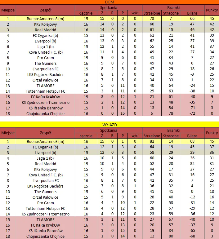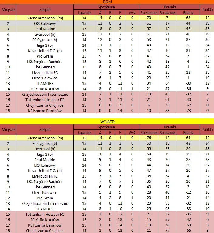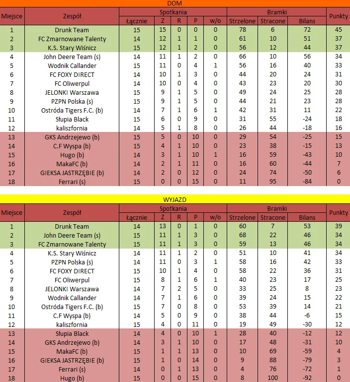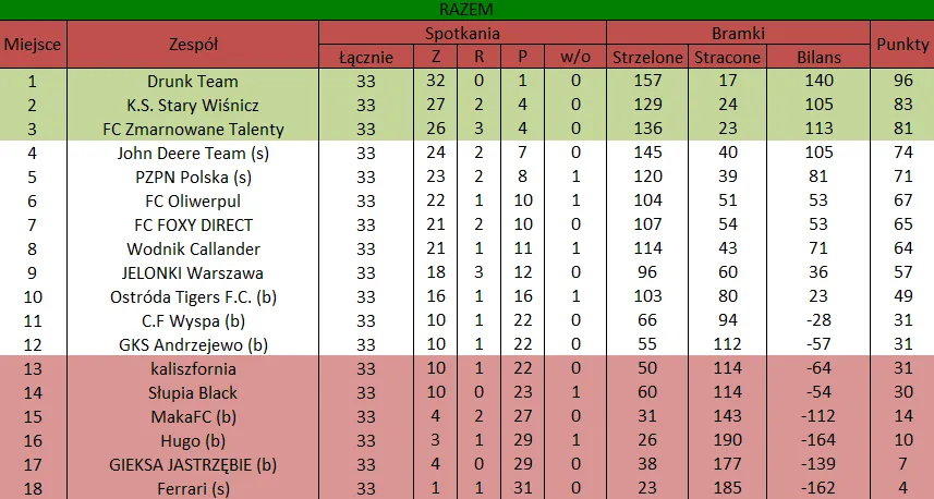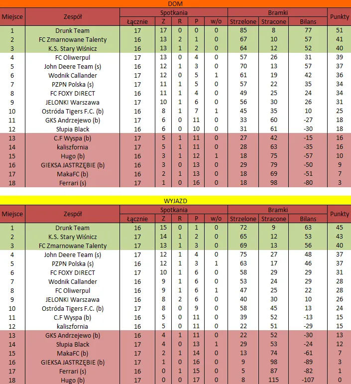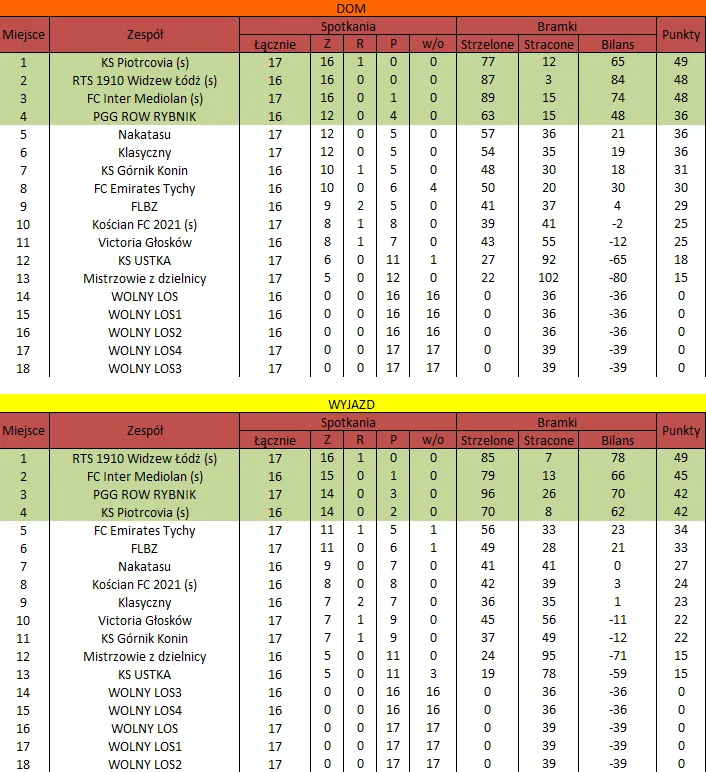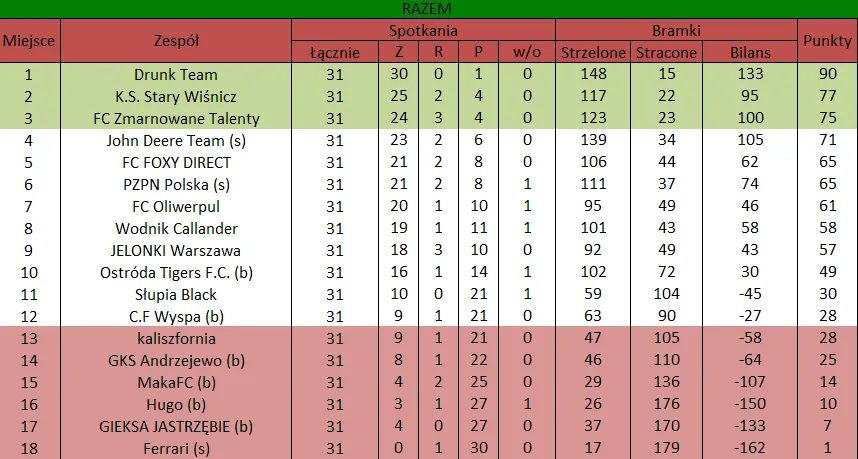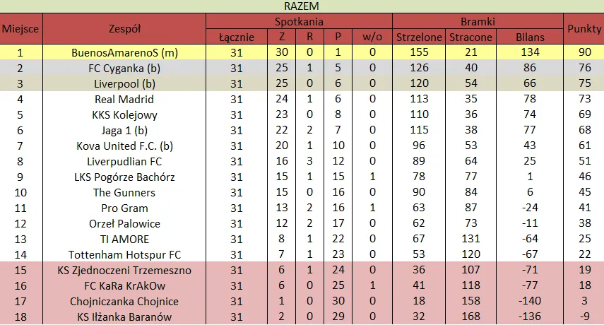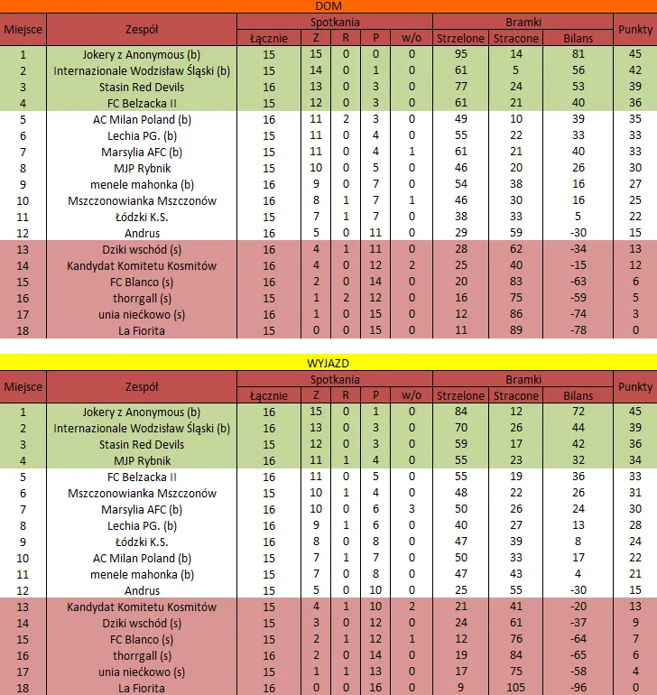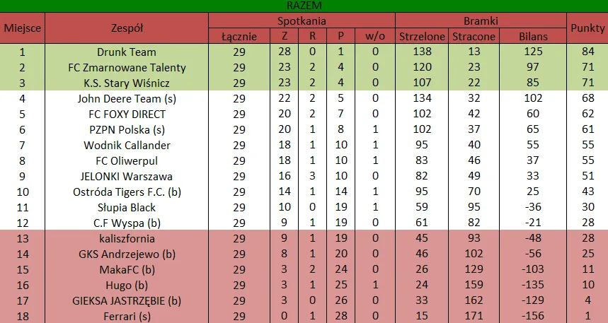 WOLNY LOS4 0 : 3 FLBZDrużyny z minusowo punktowym startem: FC Emirates Tychy (-10), KS USTKA (-5), FLBZ (-5), Mistrzowie z dzielnicy (-5), Klasyczny (-5).