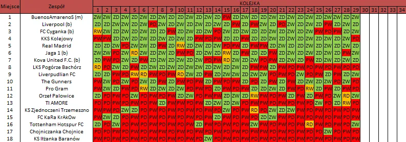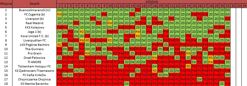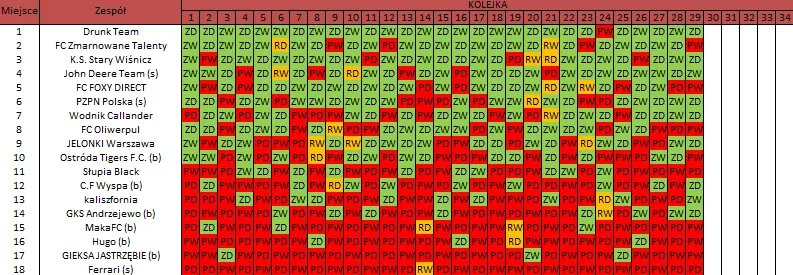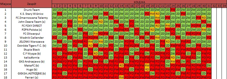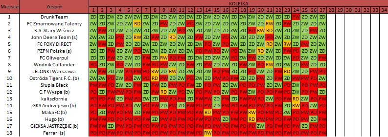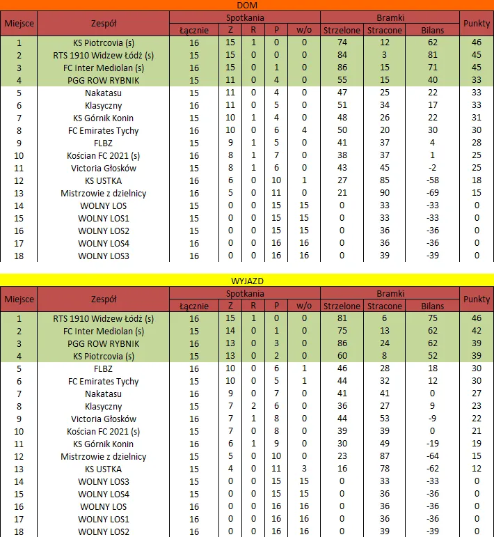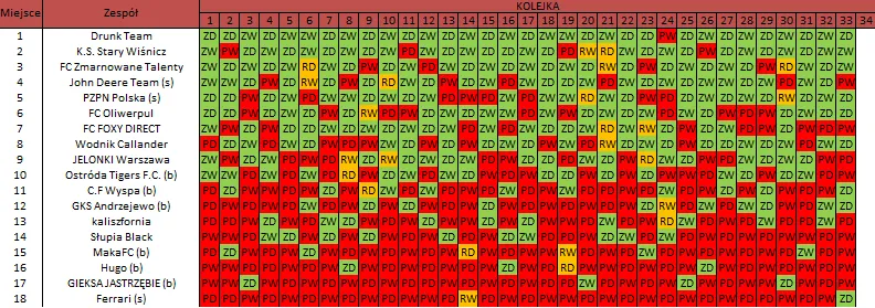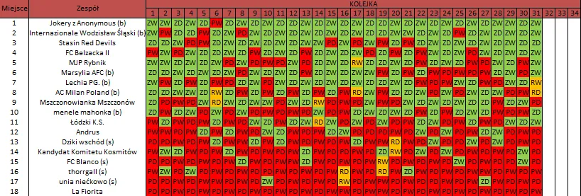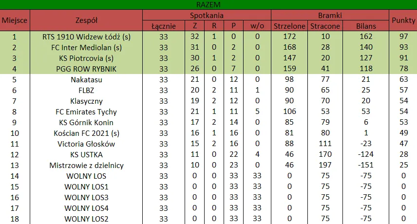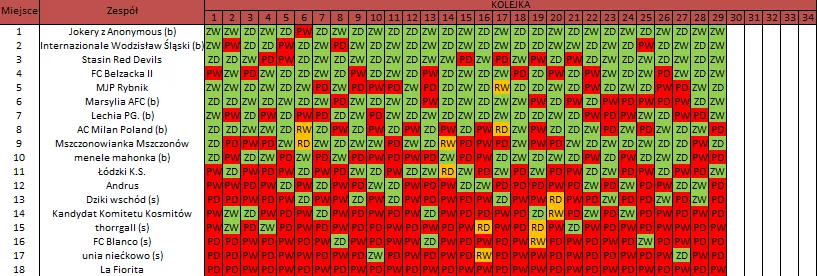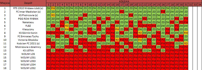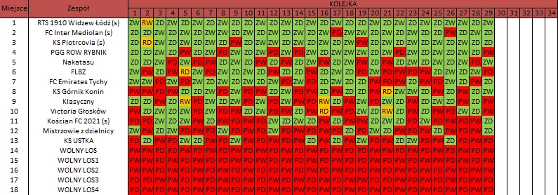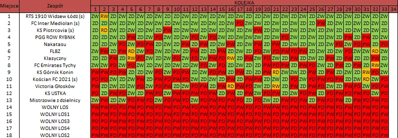 WOLNY LOS3 0 : 3 FC RokitaDrużyny z minusowo punktowym startem: KING ŁÓDŹ (-10), Redłovia Redło (-10), .KKS Karsznice. (-10), KP CREW Porąbki (-5).