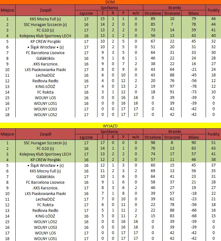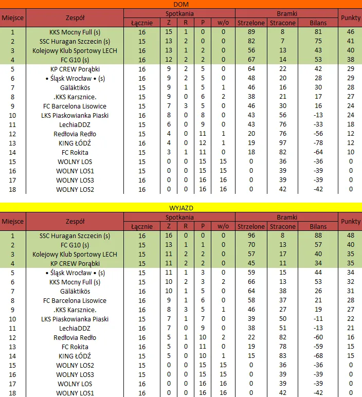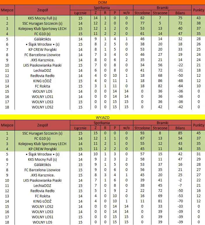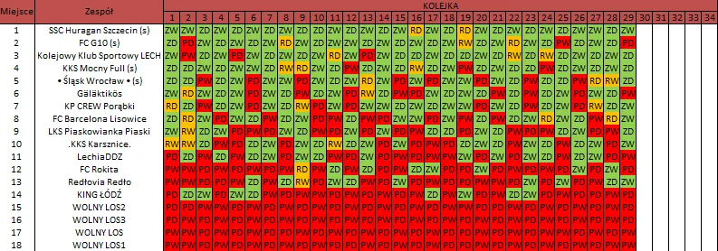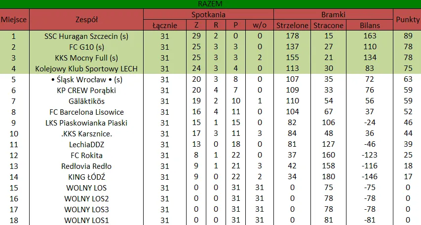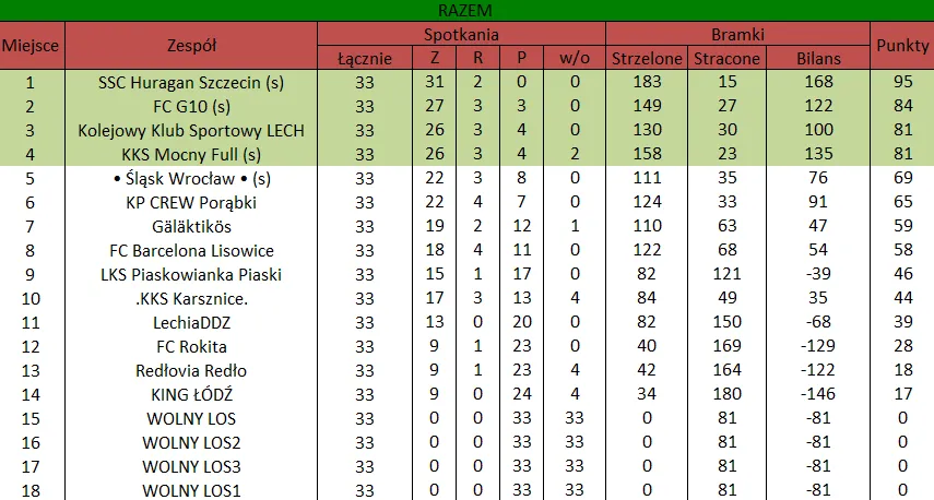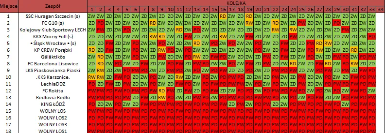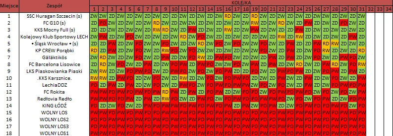 WOLNY LOS3 0 : 3 SSC Huragan Szczecin (s)Drużyny z minusowo punktowym startem: KING ŁÓDŹ (-10), Redłovia Redło (-10), .KKS Karsznice. (-10), KP CREW Porąbki (-5).