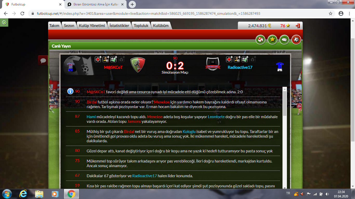 Bu alanda turnuvada yaptığınız maçların skorlarını ekran görüntüsü alarak paylaşınız!