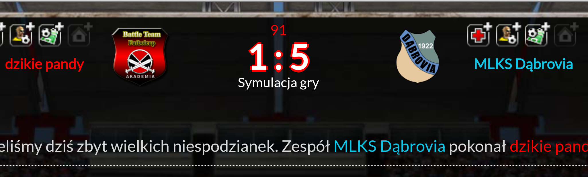 dzikie pandy - MLKS Dąbrovia 1:5Dieser Beitrag wurde bereits 1 mal editiert, zuletzt von „zimny1231“ ()