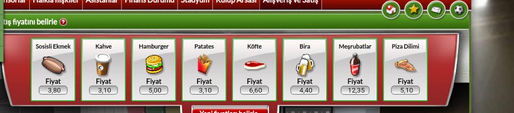 Ben bu konuyu ariyordum ideal satis fiyati nedir bufe 3/3 ama bazen forma ve top cok satiliyor fiyat artirinca hic o yuzden bi turlu denge kuramadim kazanc elde etmek icin